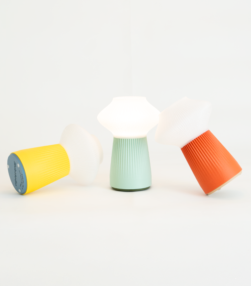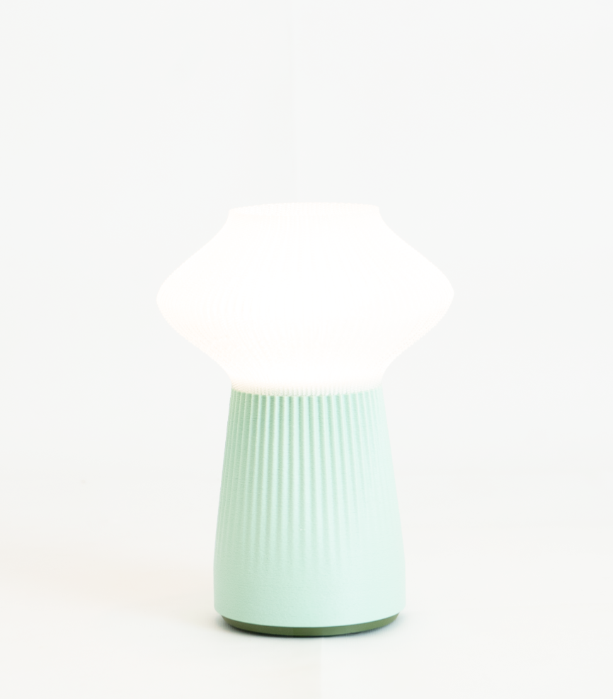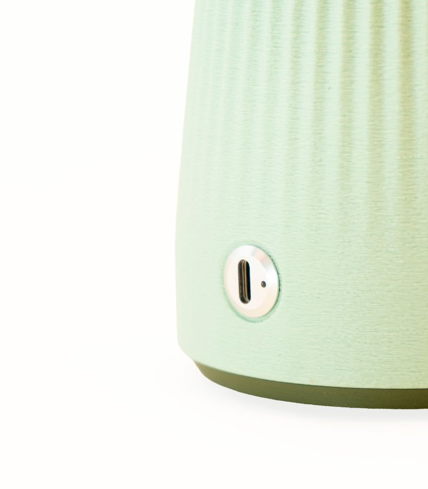 Pequeña pero llena de carácter, la .Chante_01 B es una lámpara portátil que combina practicidad y diseño. Funciona con batería recargable a través de puerto tipo C y cuenta con luz dimerizable para ajustar la intensidad según el momento. Su superficie rugosa pero fluida presenta surcos que ascienden desde la base y se convierten en un tejido translúcido que se ilumina de forma suave y uniforme. Ideal para acompañarte en mesas de noche, escritorios o para mover de un espacio a otro con facilidad.
