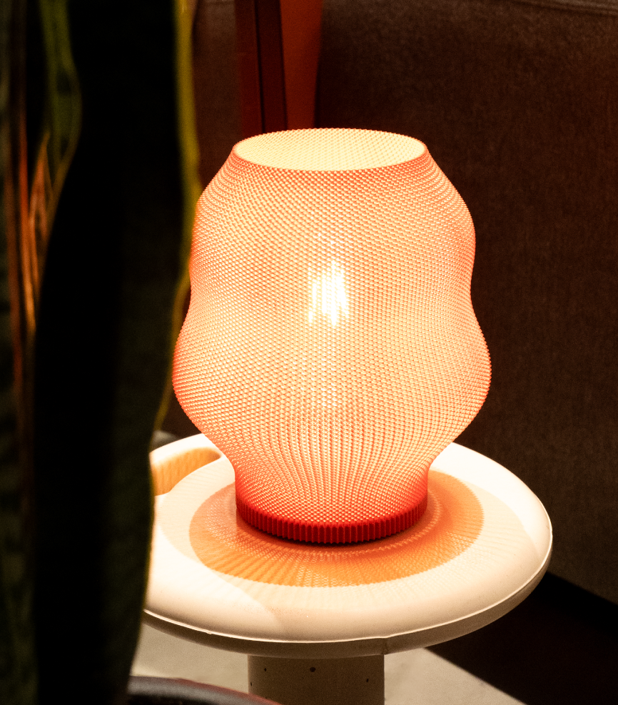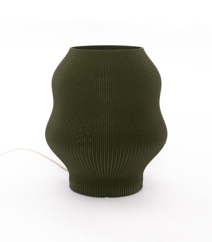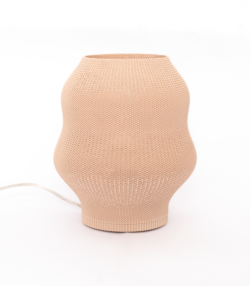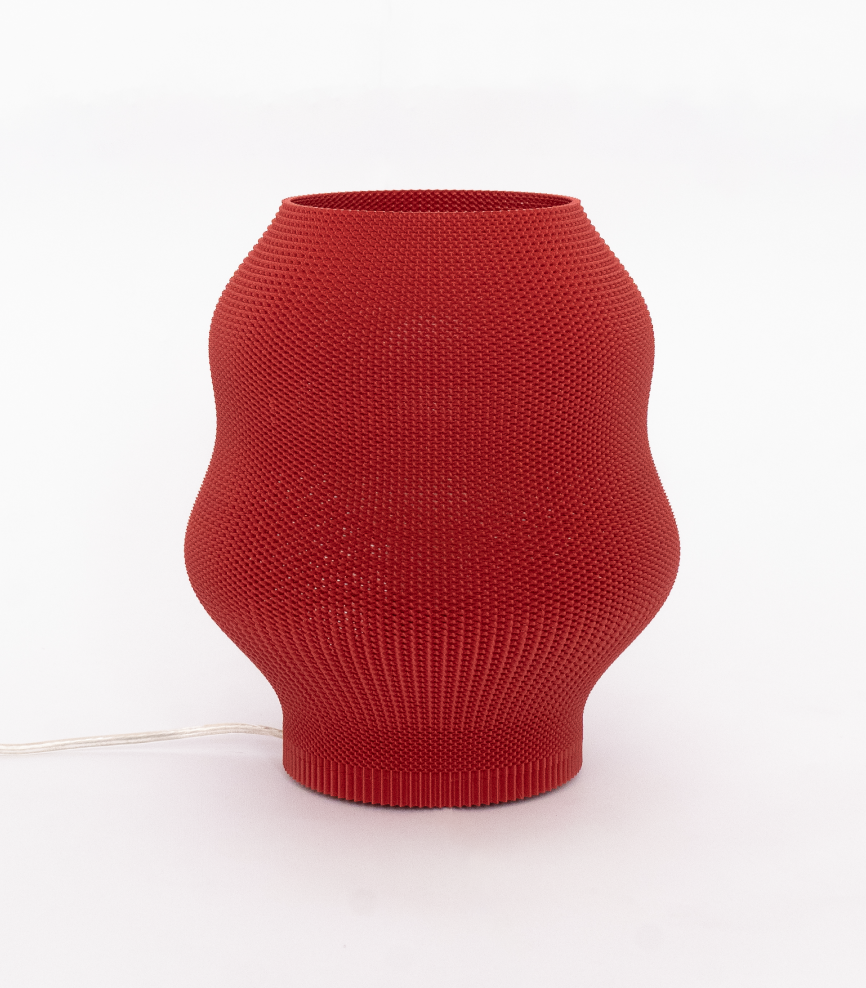 Esta lámpara le apuesta a la forma de un hongo que brota con fuerza desde la tierra. Impresa en 3D con PLA a base almidón de maíz, su textura tejida capa por capa le da un acabado robusto, pero orgánico, como si saliera misma de la naturaleza.